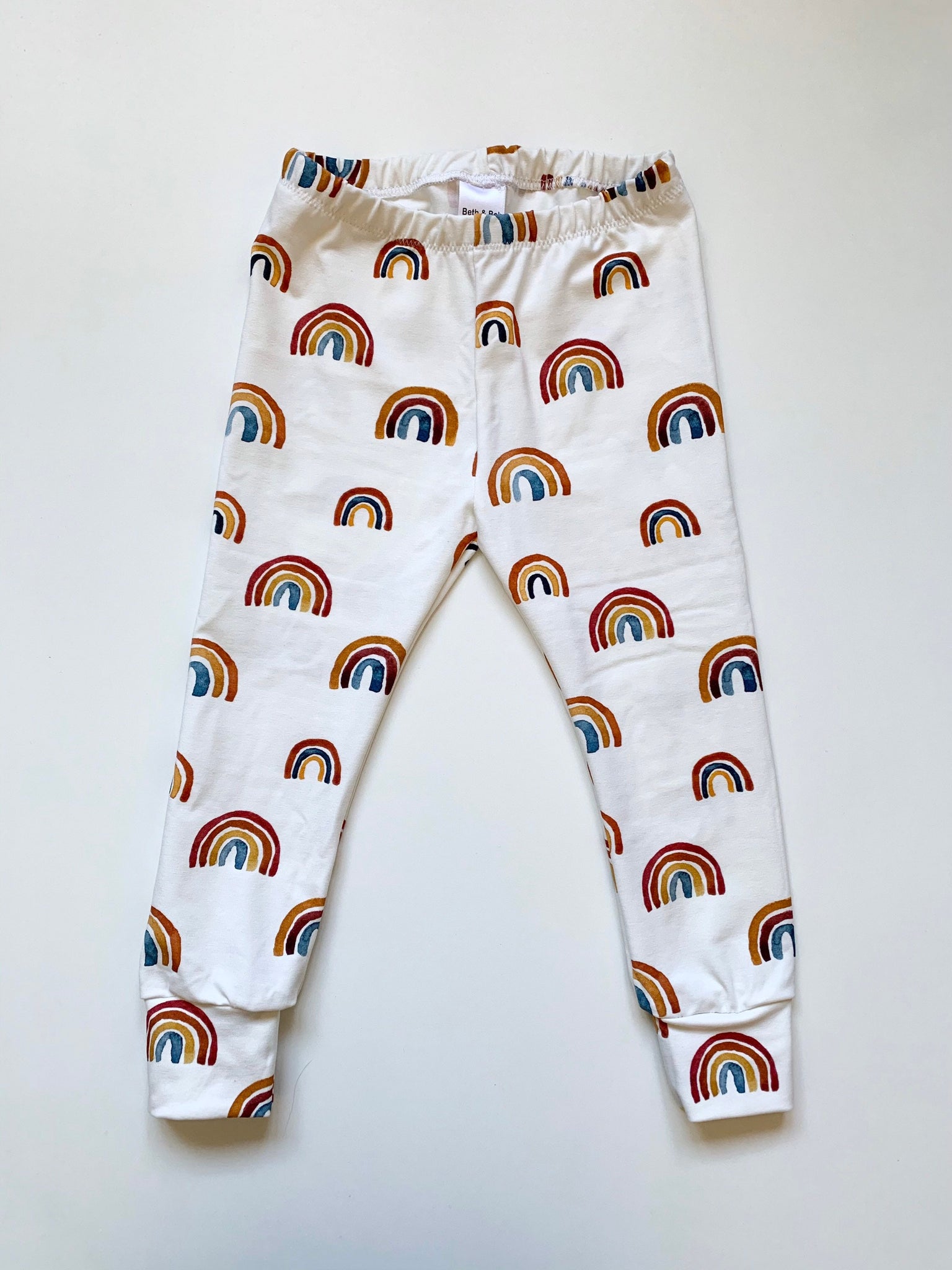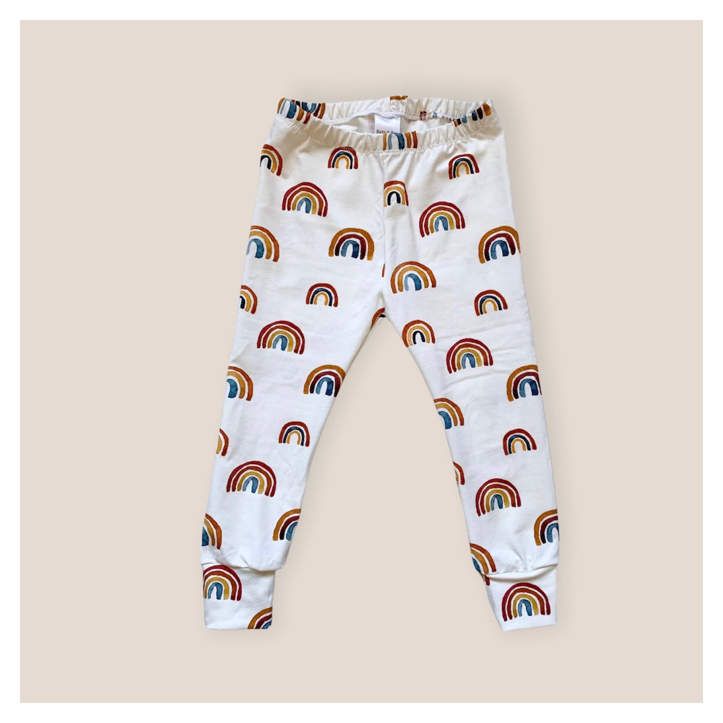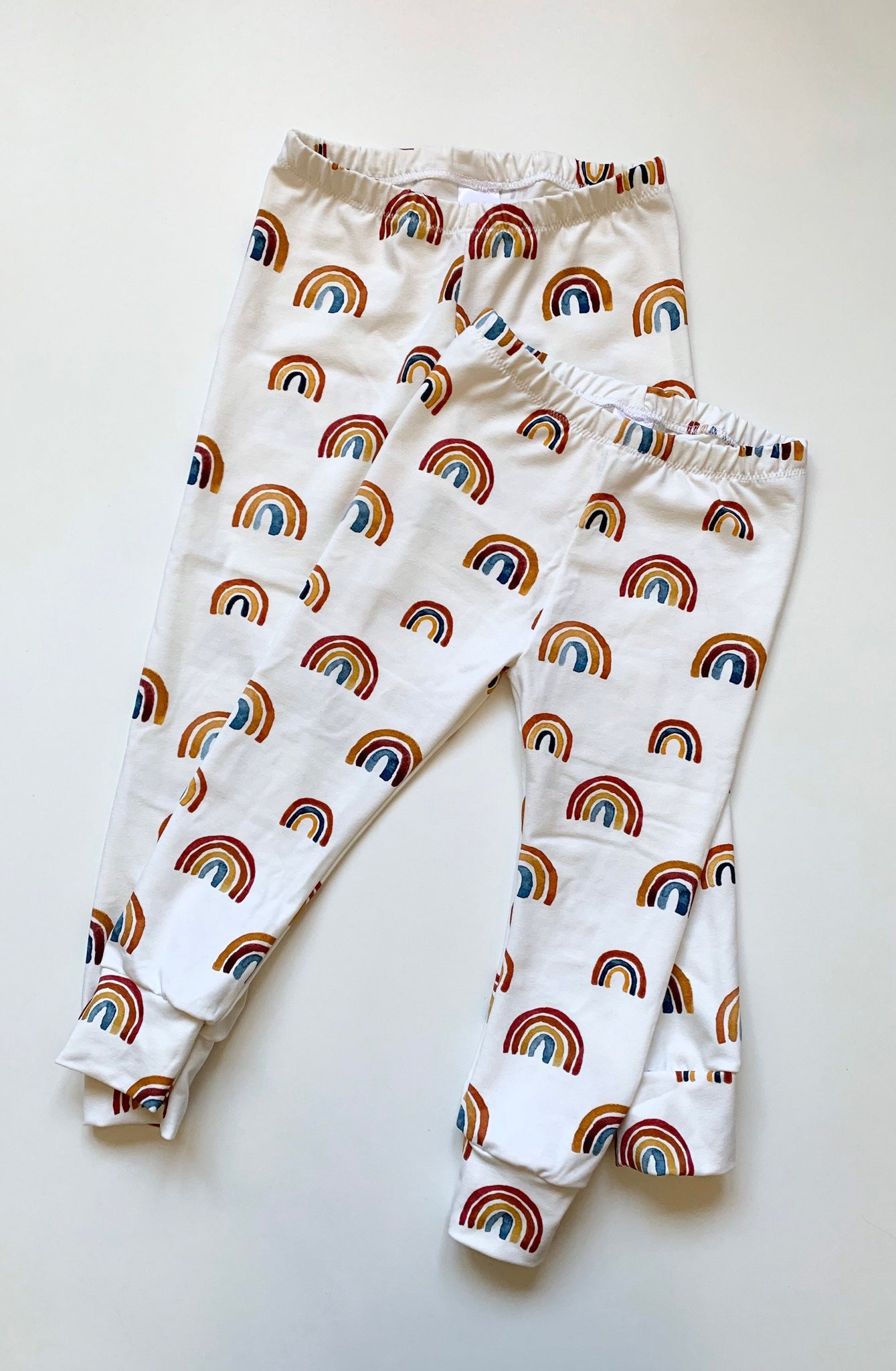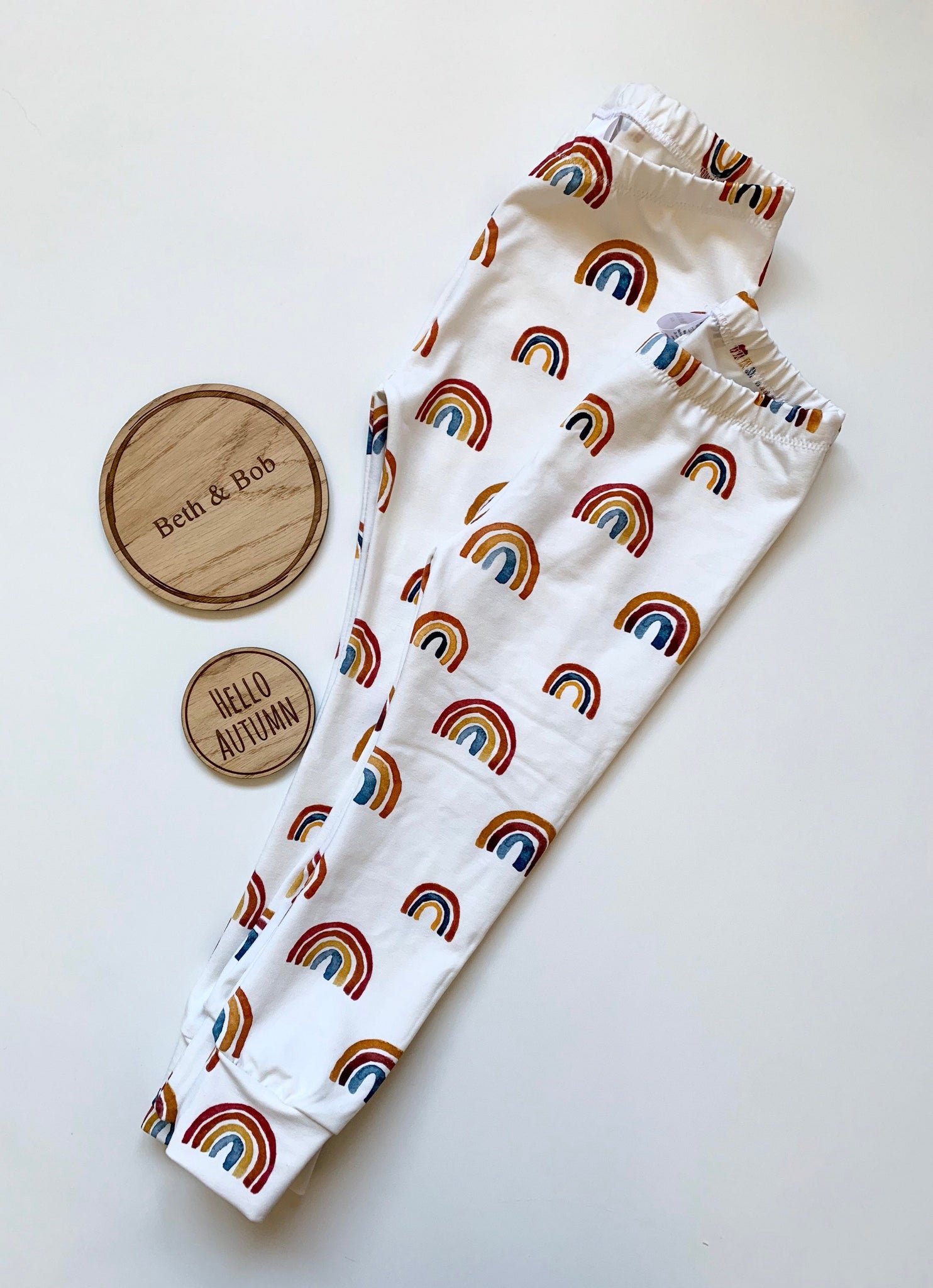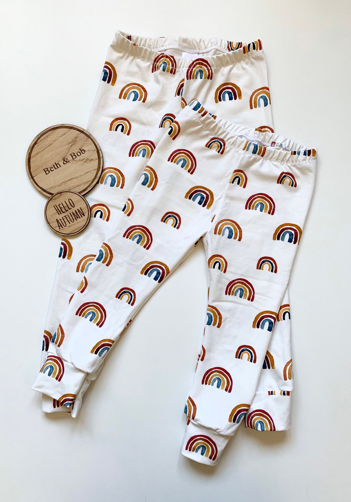 These leggings are made from an Organic Jersey Fabric which makes them super soft, they have an elasticated waist, and reversible ankle cuffs. The cuffs can be turned up / down as your baby grows, and they are perfect for keeping those little socks on. The seams are over-locked for a quality finish.