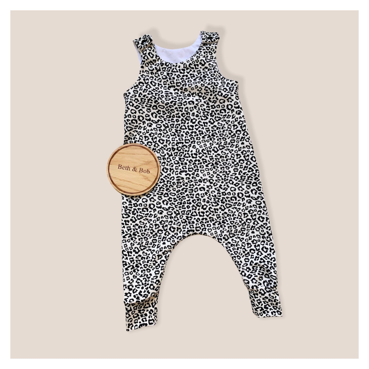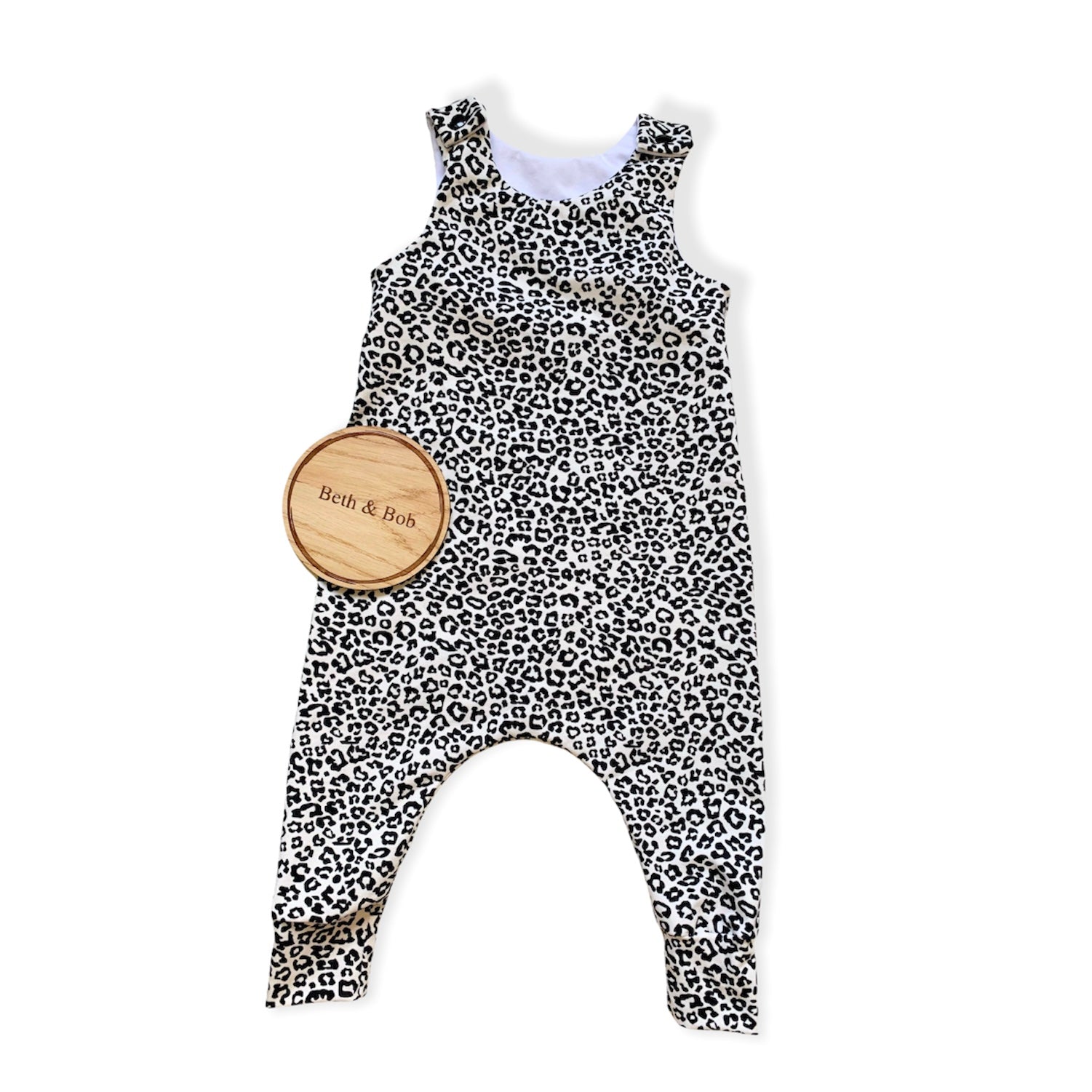 This harem style romper is made from a Jersey Fabric which makes it lovely and comfy, it has poppers on the shoulders for easy fastening, as well as reversible ankle cuffs. The cuffs can be turned up / down as your baby grows, and they are perfect for keeping those little socks on. The seams are over-locked for a quality finish.