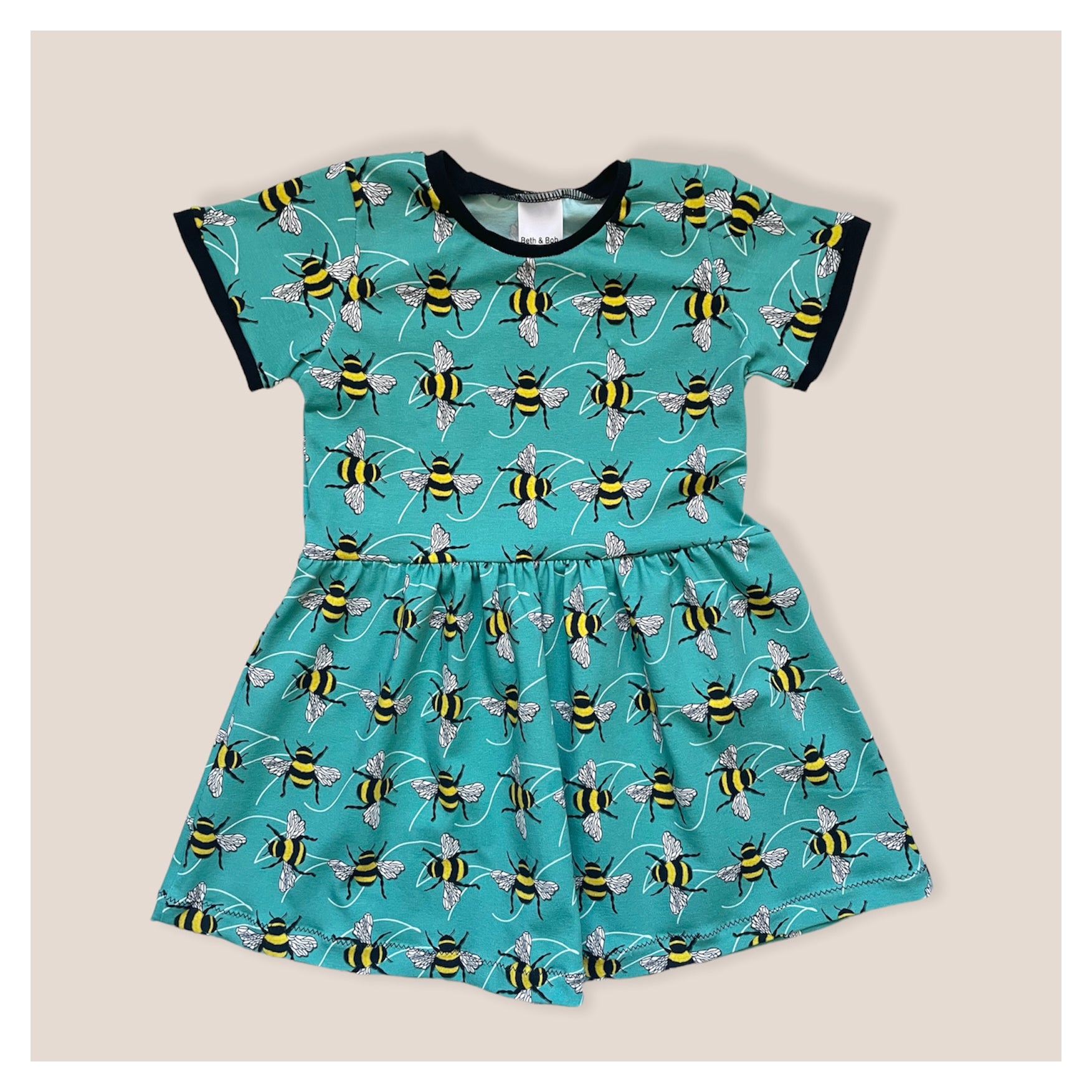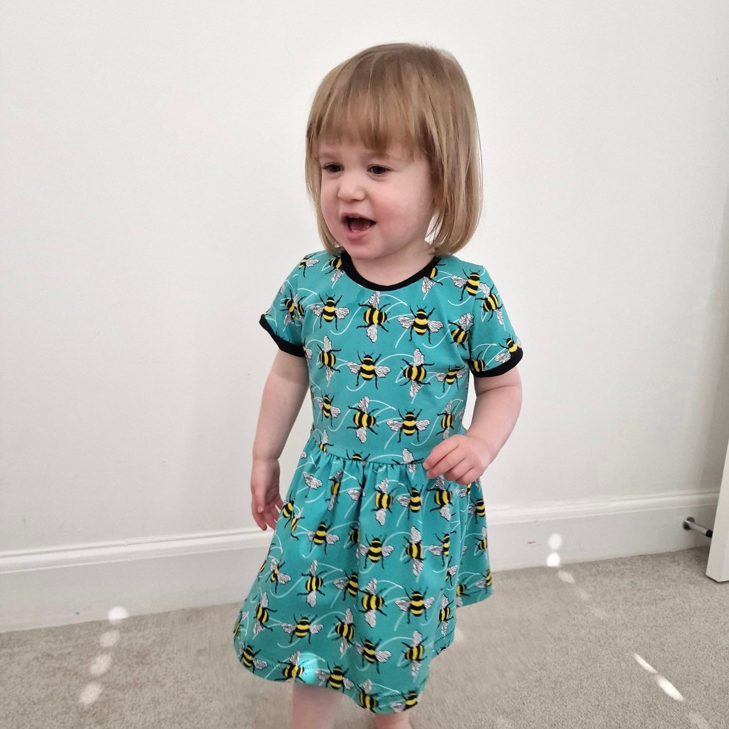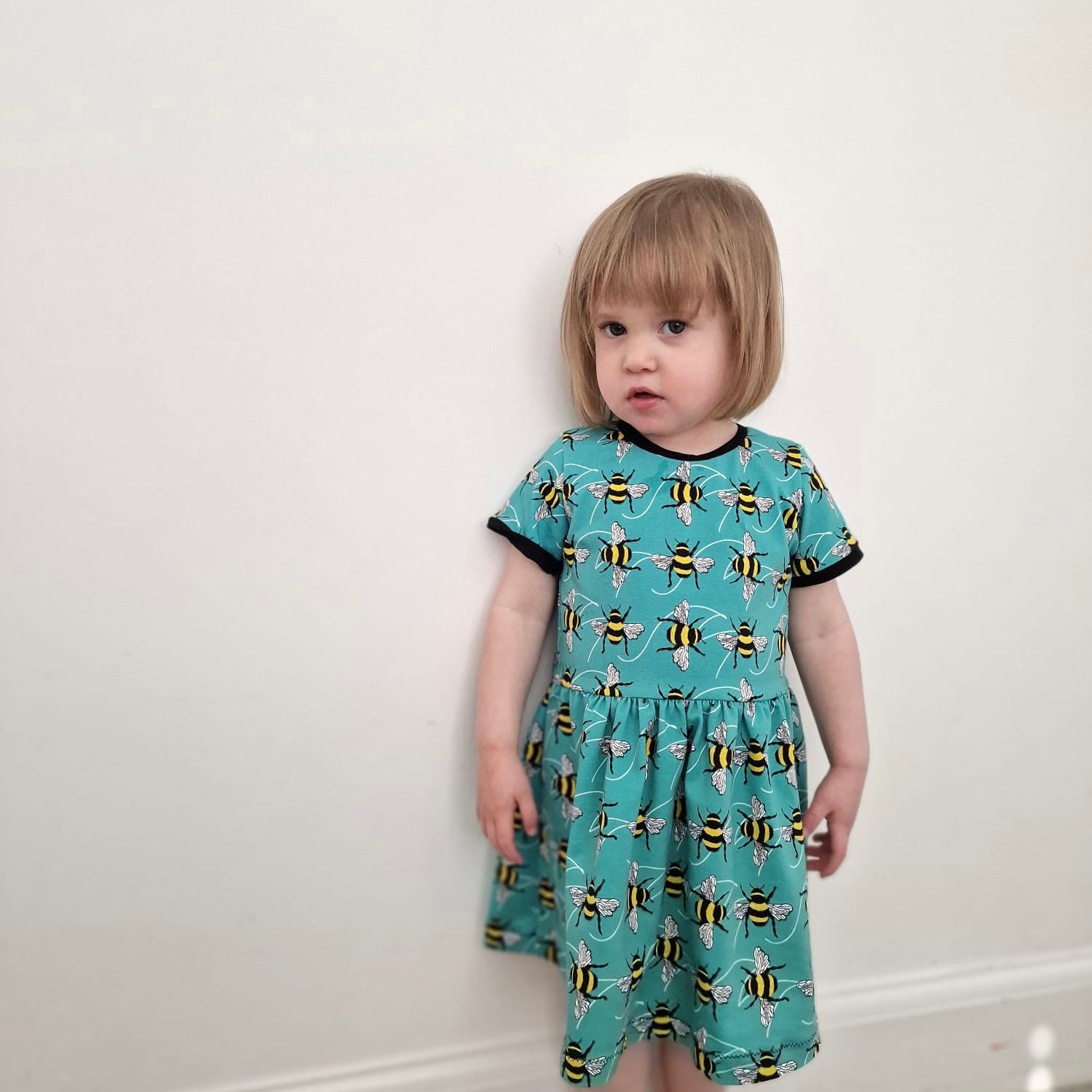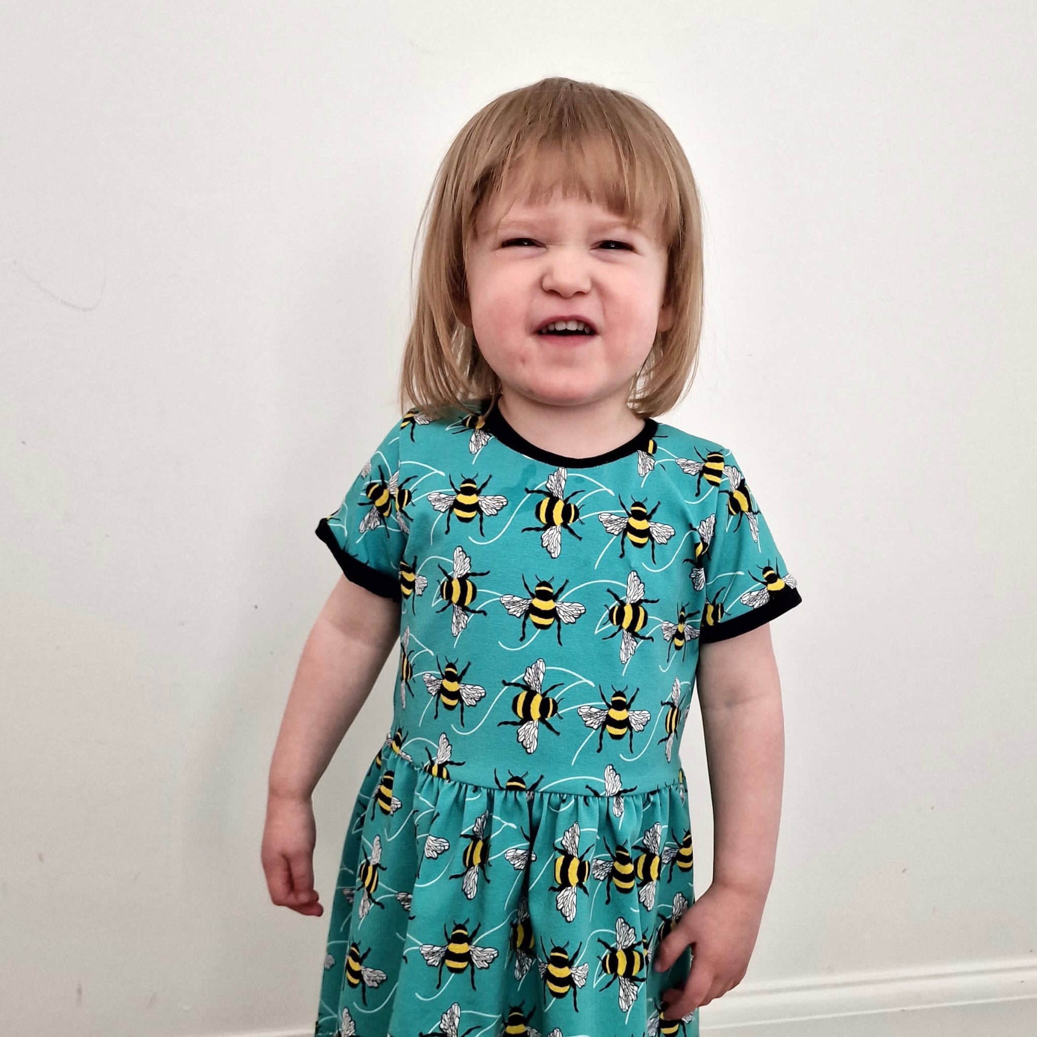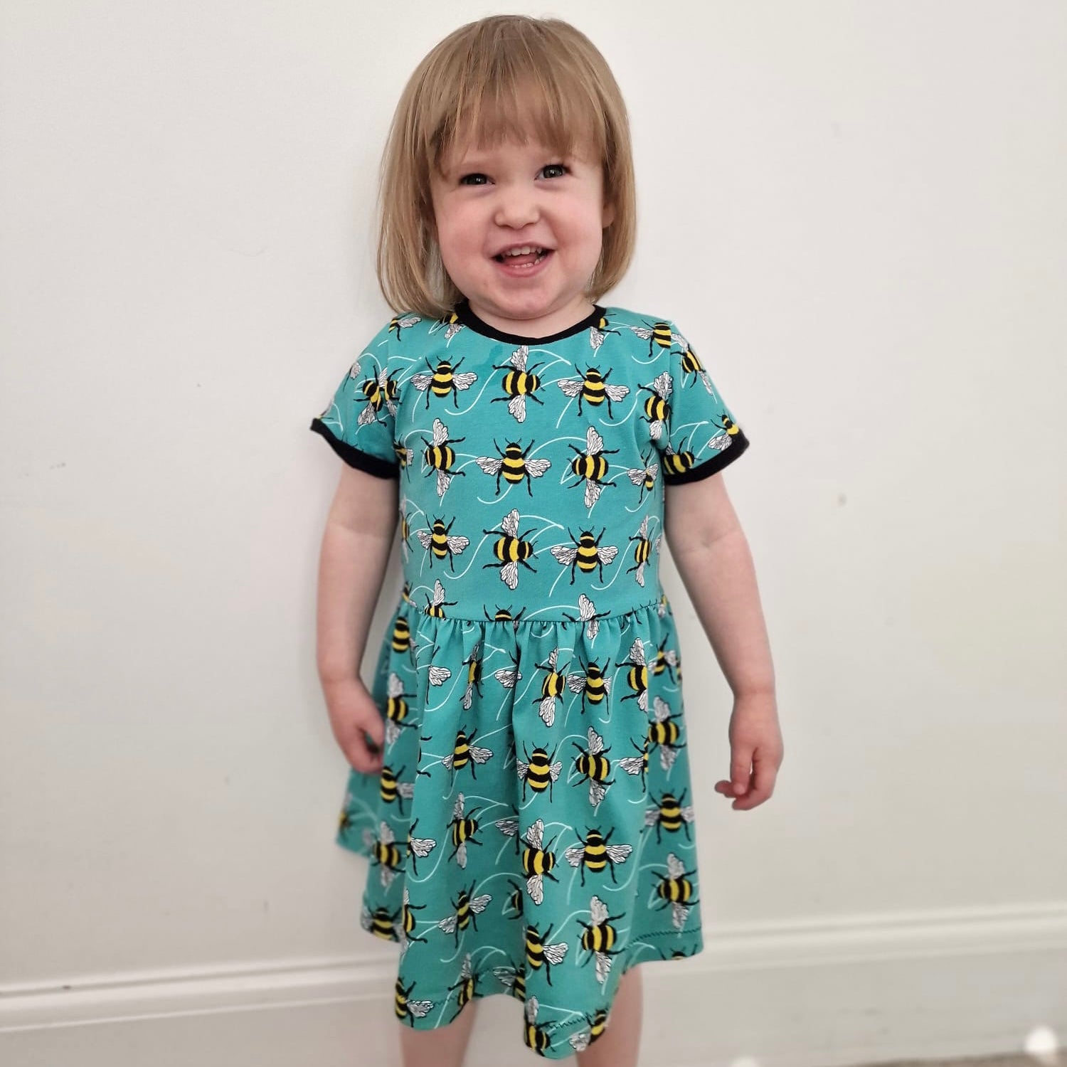 This beautiful short sleeved twirl dress is made from an Organic Jersey Fabric which makes it lovely and comfy and the seams are over-locked for a quality finish.
