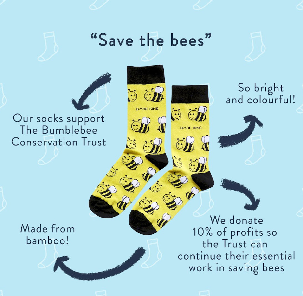 10% of profits on these Bumblebee socks are donated to The Bumblebee Conservation Trust.