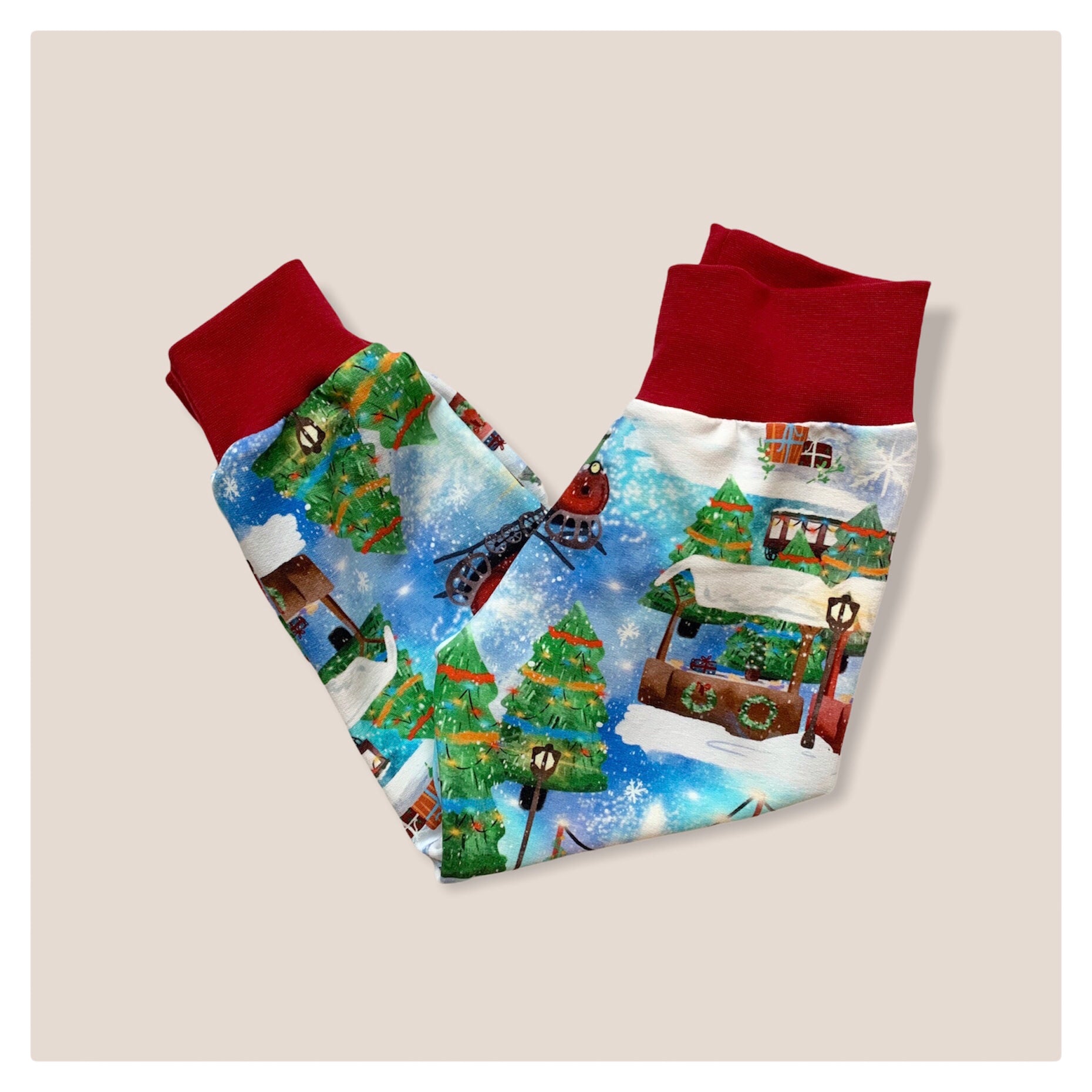 These lightweight joggers are made from a French Terry Jersey which is slightly thicker than my usual fabrics, and the waistband & cuffs are made from a Jersey Ribbing. They have a yoga style waist for extra comfort, as well as reversible ankle cuffs. The cuffs can be turned up / down as your baby grows, and are also perfect for keeping those little socks on. The seams are over-locked for a quality finish.