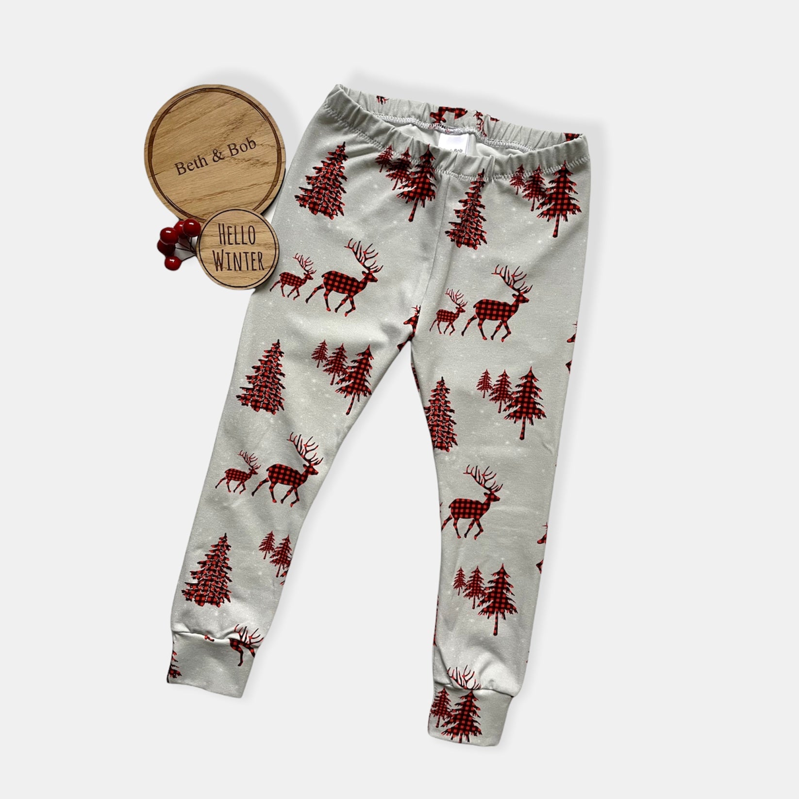 Buffalo Plaid Deer Baby & Children's Leggings • MADE TO ORDER • Kids Leggings • Christmas •