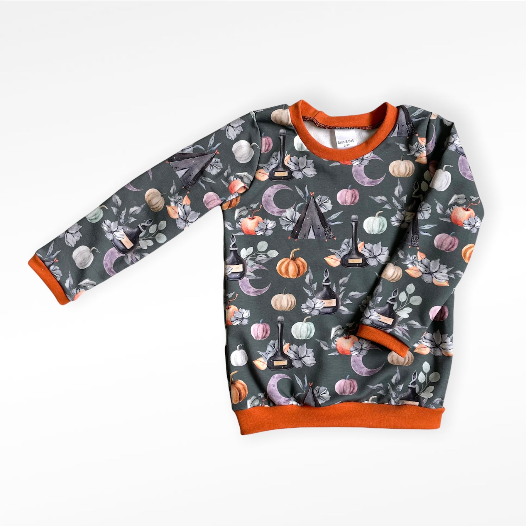 This lightweight jumper is made from a French Terry Jersey which is slightly thicker than my usual fabrics, and the waistband & cuffs are made from a Jersey Ribbing. It is nice and comfy for your little one, and the seams are over-locked for a quality finish.