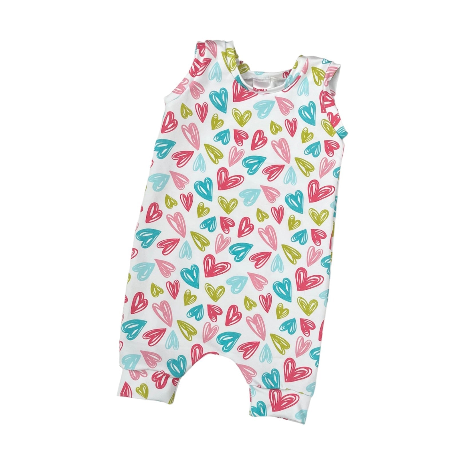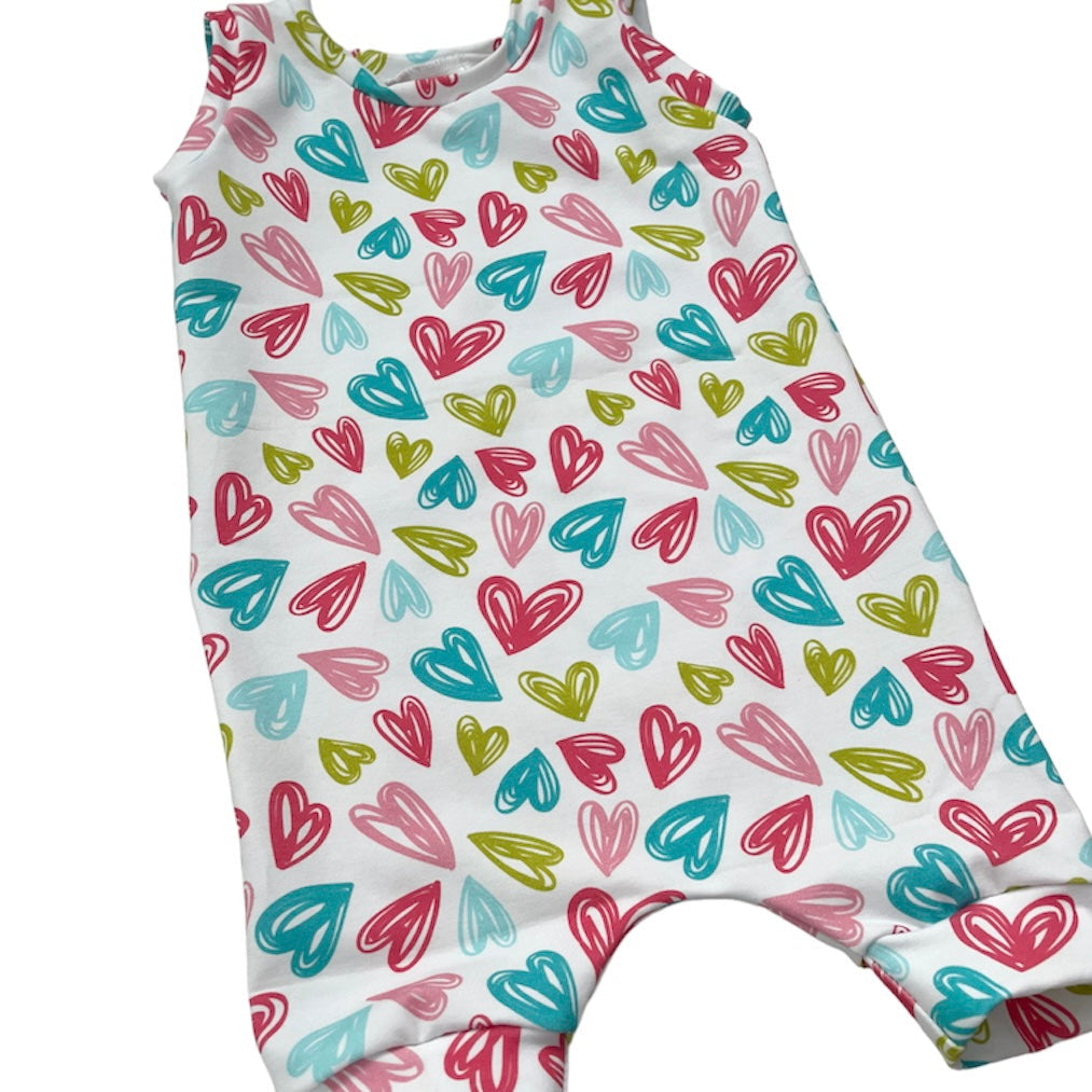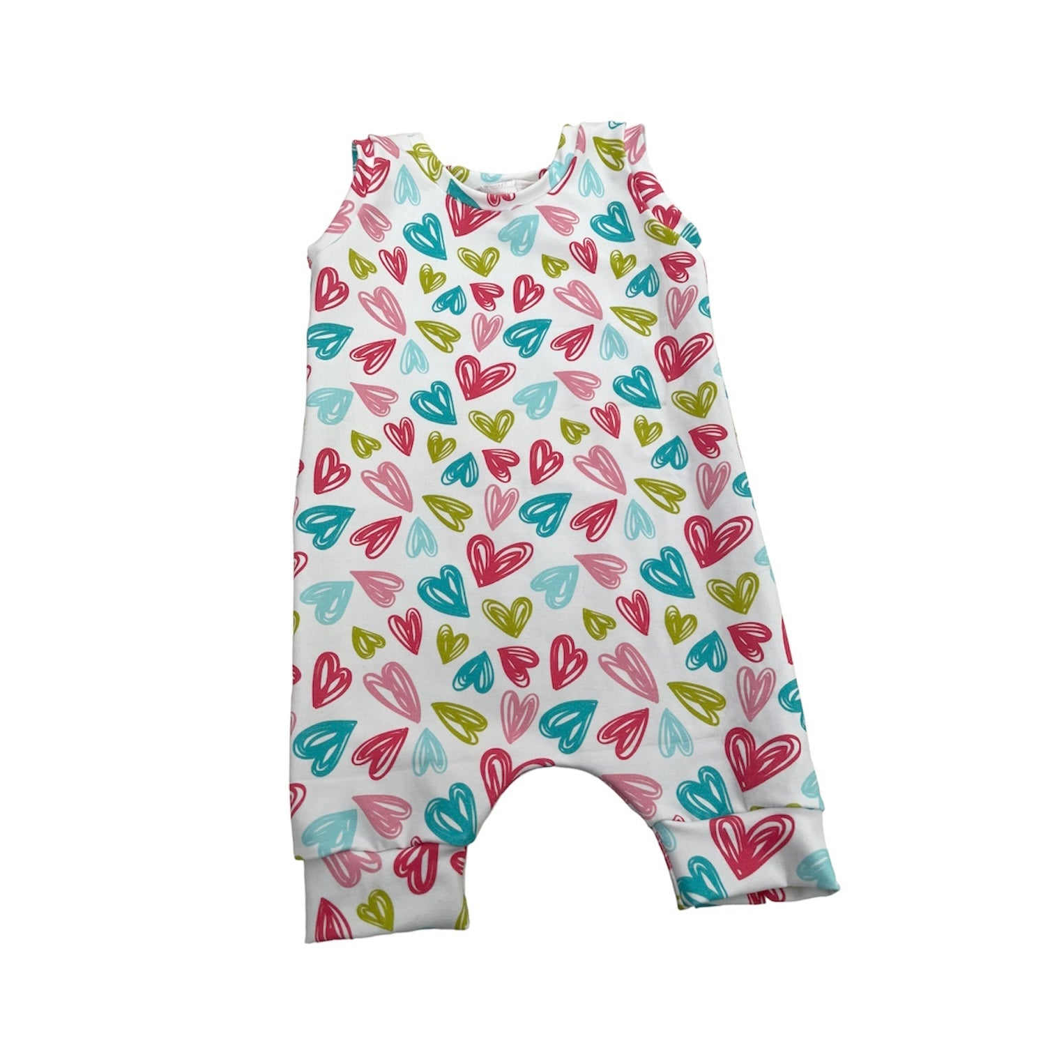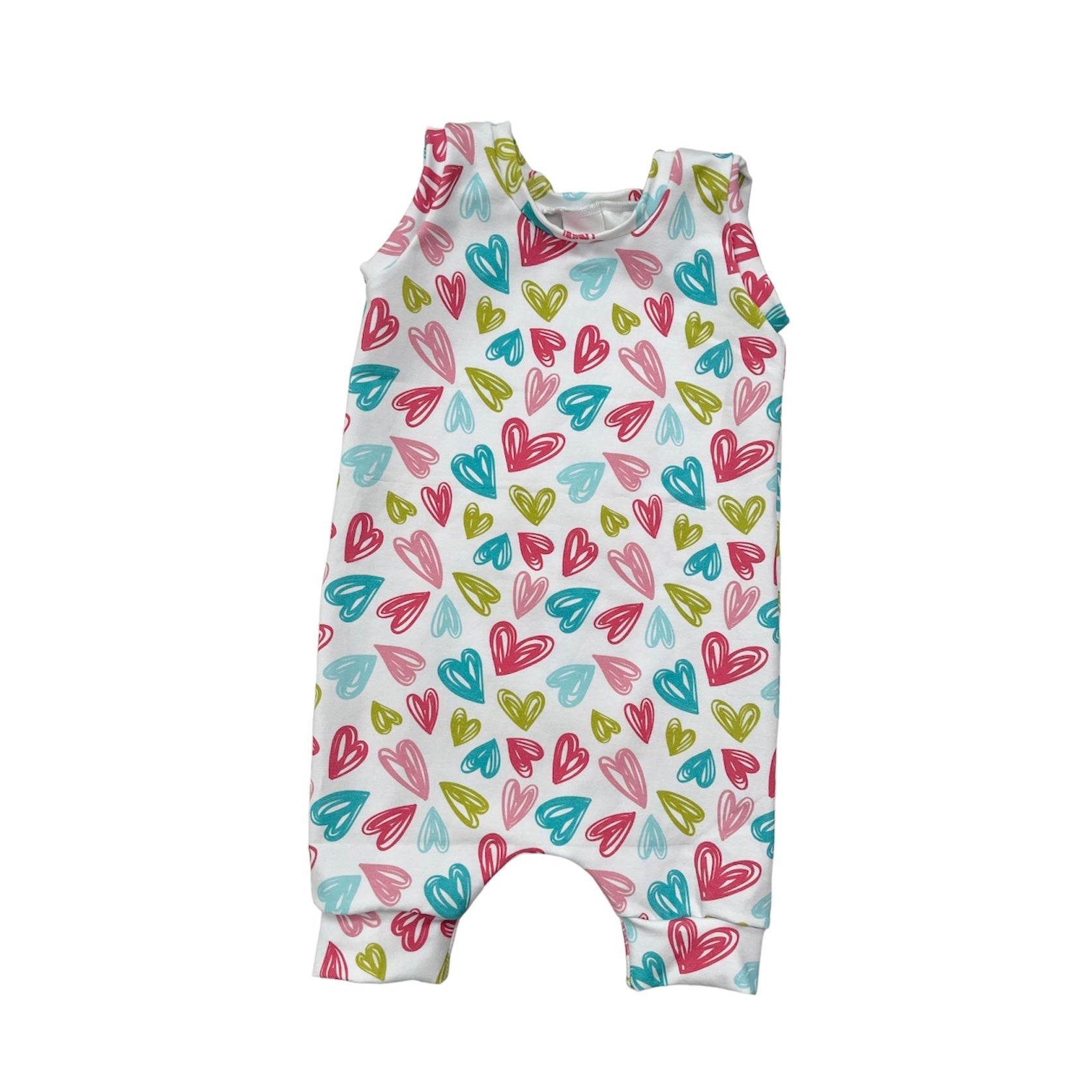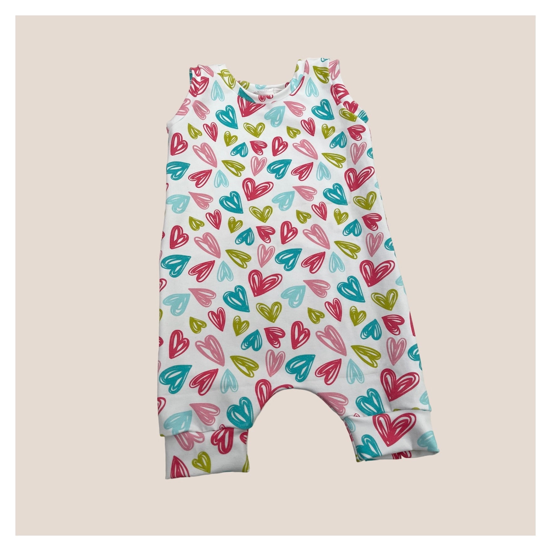 This harem style shortie romper is made from a Jersey Fabric so is lovely and comfy, and it's a pull on style with no poppers which makes it great for quick changes. The seams are over-locked for a quality finish.