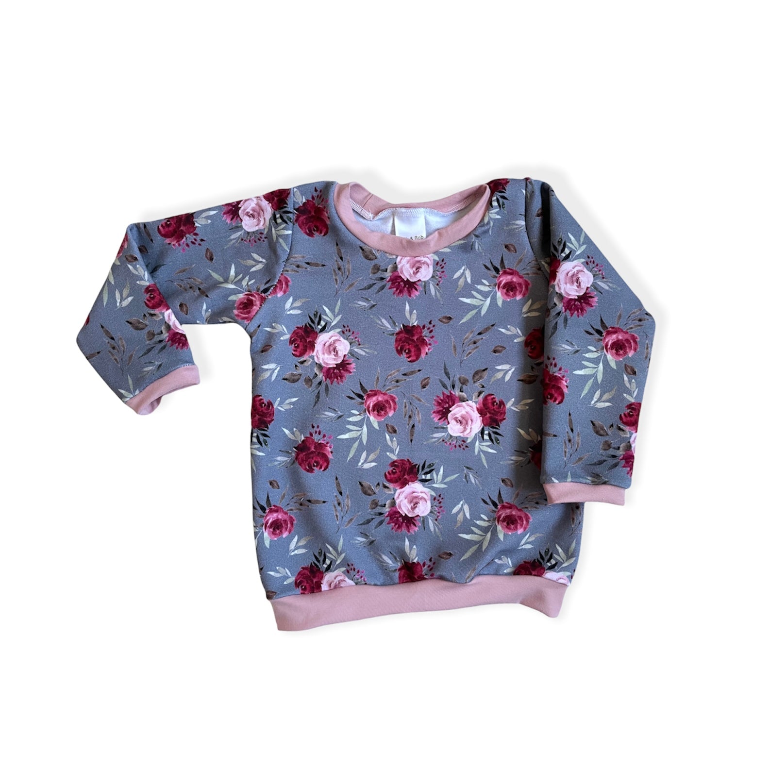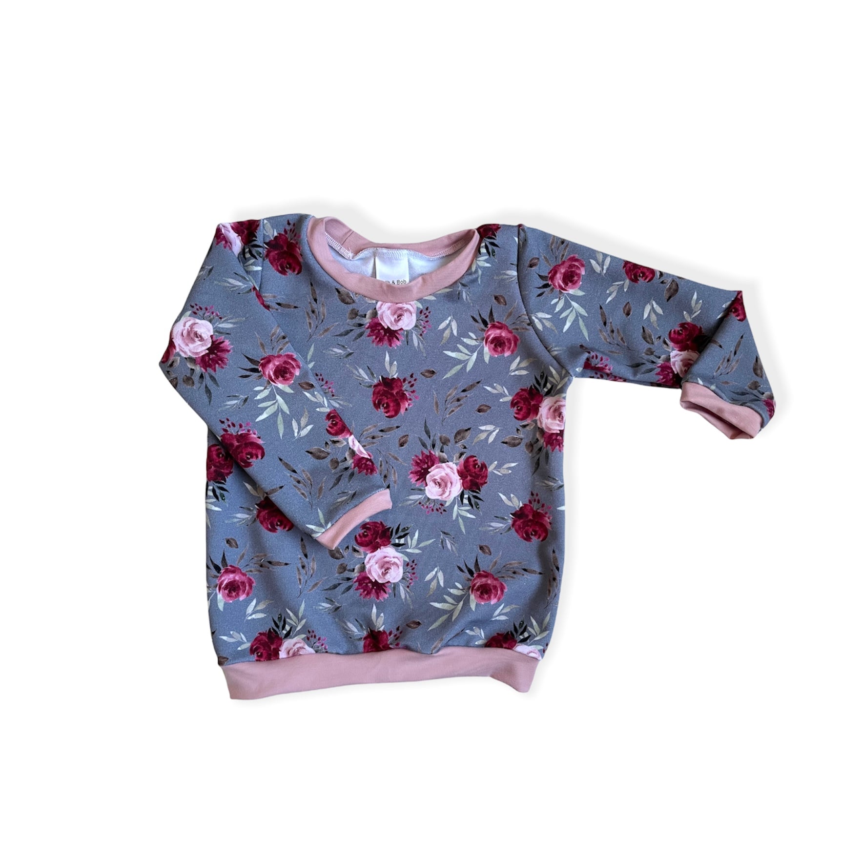 Grey & Pink Red Roses Baby & Children's Lightweight Jumper • MADE TO ORDER • Kids Jumper •