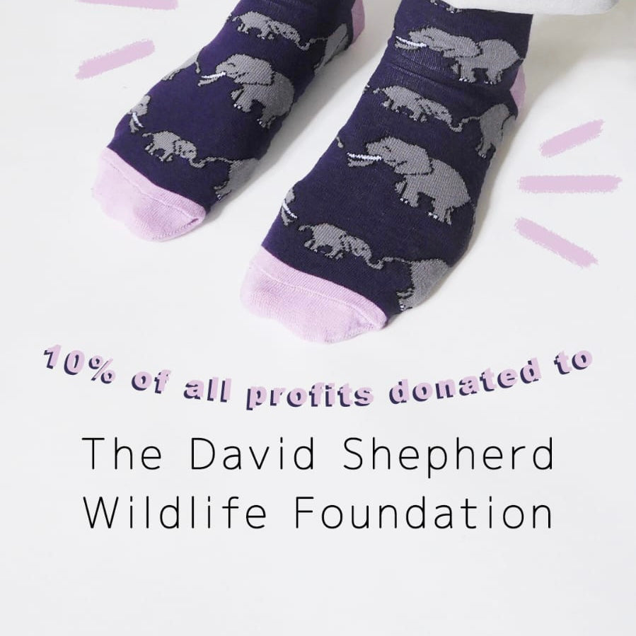 10% of profits on these Elephant socks are donated to The David Shepherd Wildlife Foundation.