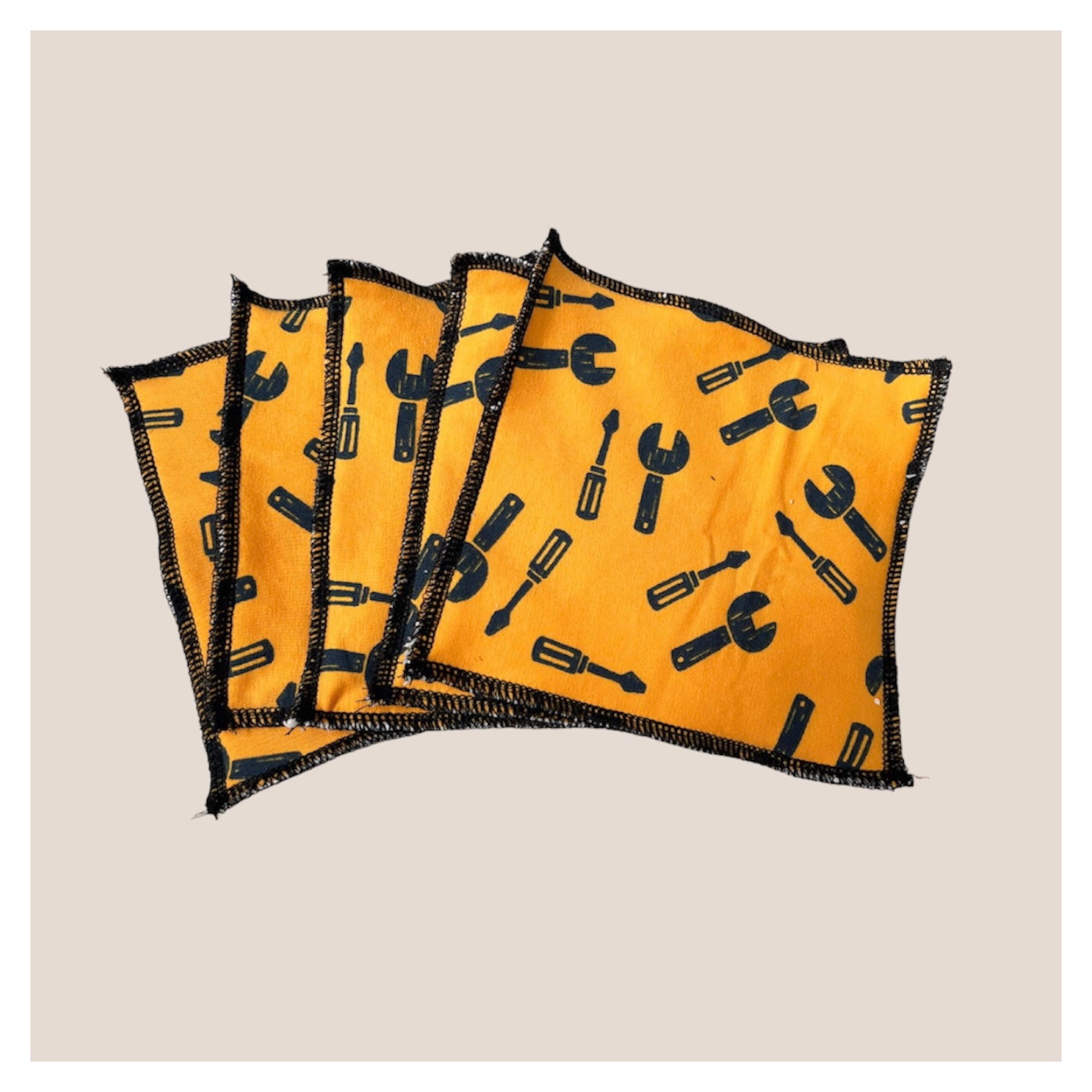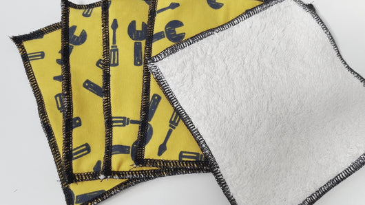 Handmade Reusable Wipes, Yellow Tools Design.