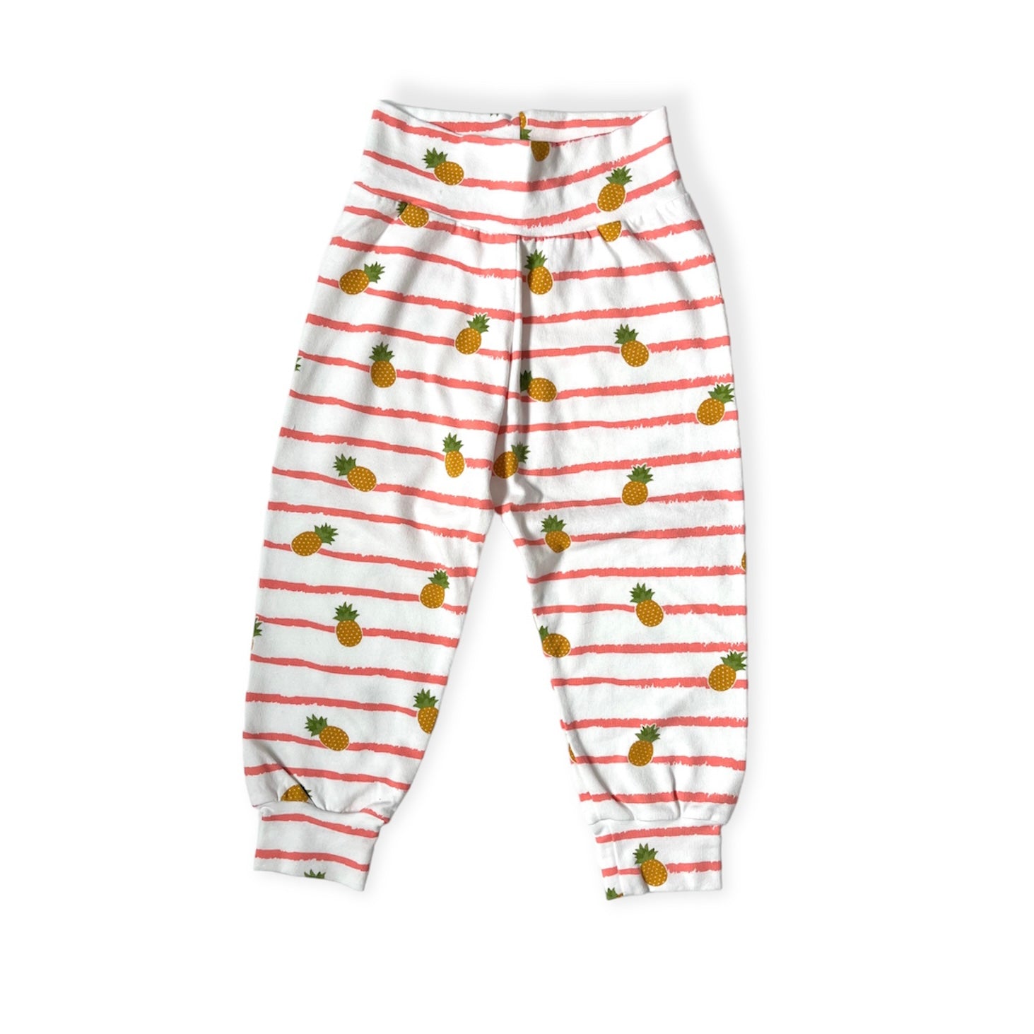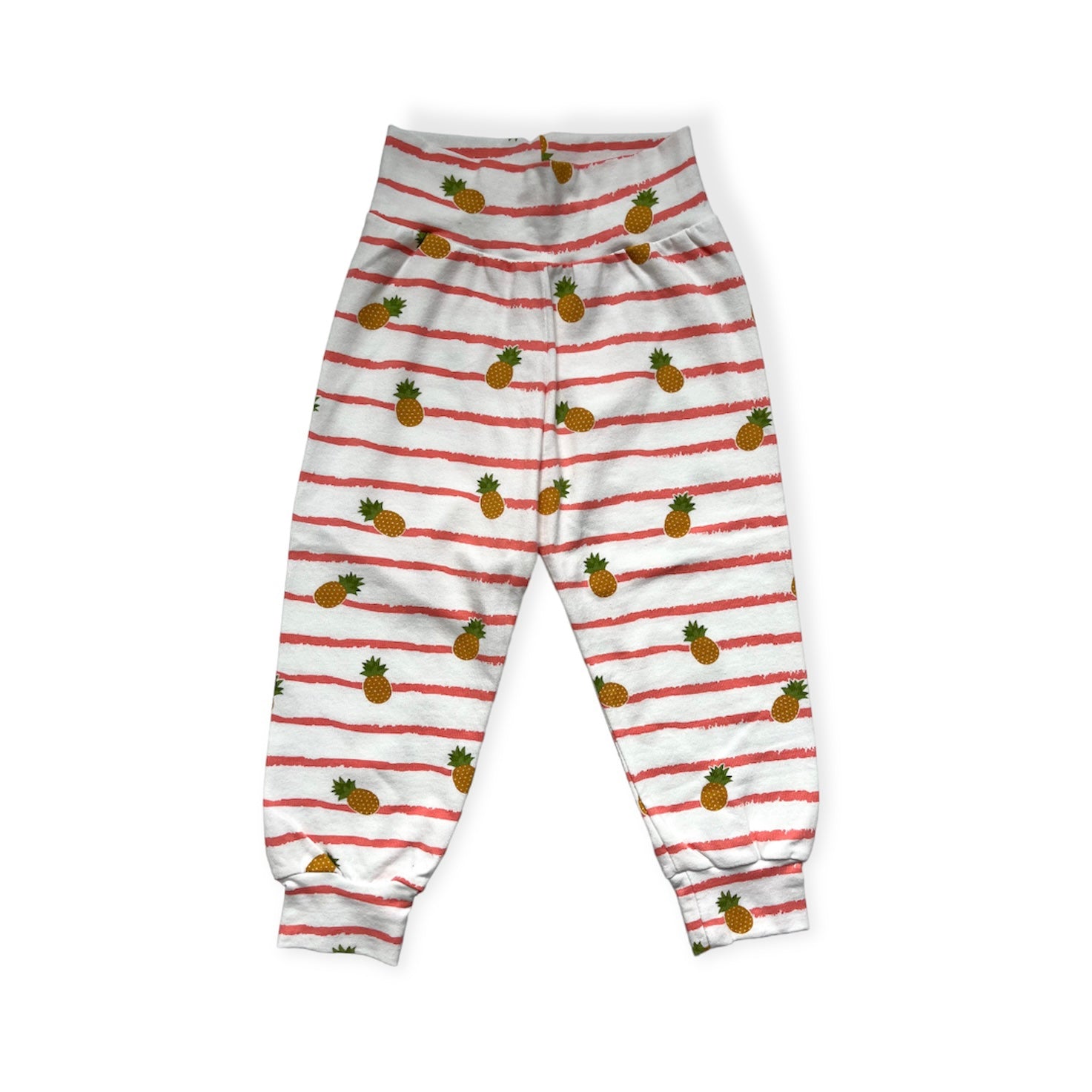 These cuffed trousers are made from a Jersey Fabric which is super soft and comfy, and the waistband & cuffs are made from a Jersey Ribbing. They have a yoga style waist for extra comfort, as well as reversible ankle cuffs. The cuffs can be turned up / down as your baby grows, and are also perfect for keeping those little socks on. The seams are over-locked for a quality finish.